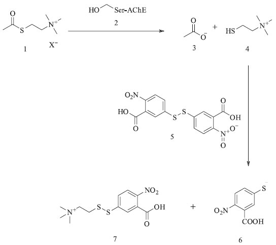 I. Instituto de Defesa Química, Biológica, Radiológica e Nuclear, Exército Brasileiro, Avenida das Américas 28705, 23020-470 Rio de Janeiro - RJ, Brasil Recebido em 24/04/2018 *e-mail: abcsimas@nppn.ufrj.br Straightforward, microscale, Ellman's cholinesterase test procedures are presented, useful for screening of novel compounds aiming at neurodegenerative diseases and antidotes towards nerve agents and pesticides. Herein, we detail the different procedure features and set forth guidelines on experimental choices researchers may make. The detailed procedure lowers the costs for Ellman's test, what is highly desirable for low-budget groups in science-lagging and developing countries. INTRODUCTION Cholinesterases are serine-estearases, which hydrolyze acetylcholine (ACh), the major neurotransmitter in parasympathetic neurotransmission, interrupting stimulation of cholinergic receptors.1,2 Their inhibition leads to two different outcomes according to type of inhibitor used. Reversible inhibitors have been used for neurodegenerative diseases, e.g., Alzheimer's disease (AD), for which one therapeutic approach is to increase ACh concentration into the synaptic cleft, ameliorating memory loss.3 Irreversible inhibitors, such as organophosphorus compounds, used as pesticides and nerve agents, irreversibly inhibit cholinesterases, leading to overstimulation of neuromuscular junctions and other structures, which may be fatal. As there are few drugs approved for AD and there is no "universal antidote" against toxic organophosphorus compounds, research on these subjects is clearly warranted.4 The Ellman's test is a spectrophotometry-based assay to measure thiol groups in different matrices. Since its disclosure,5,6 many papers have put forward modifications of the original procedure adjusted to specific needs.7 The relative importance of such modifications sometimes is not clear to those who do not possess experience on such assays. Herein, we report a straightforward, reproducible, customable, safer and validated Ellman's procedure using 96-wells microplates, to test cholinesterase activity for both inhibition and reactivation. For being economical and rendering extensive preliminary experimentation unnecessary, it could be particularly useful to low-budget groups in science-lagging and developing countries. The reactions of Ellman's test for cholinesterase activity are depicted in Figure 1. Acetylthiocholine halide (1, X- either chloride or iodide), in presence of a non-inhibited cholinesterase (2), is hydrolyzed to acetate (3) and thiocholine (4). Then, the latter reacts with 5,5'-dithiobis(2-nitrobenzoic) acid (DTNB, 5, Ellman's reagent), affording the anionic form of 5-mercapto-2-nitrobenzoic acid (6). The reaction is monitored at 412 nm. Higher absorbance means high enzyme activity. Activities of either acetylcholinesterase (AChE, EC 3.1.1.7) or butyrylcholinesterase (BChE, EC 3.1.1.8) may be evaluated by this methodology.6-9