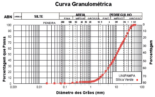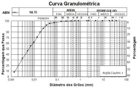 O ensaio granulométrico da argila caulim, Figura 6, foi realizado por peneiramento e sedimentaçao seguindo as orientaçoes da NBR 7181.31