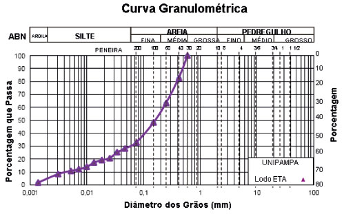 ![]() Figura 9. Distribuiçao granulométrica do lodo de ETA
