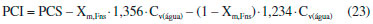 Os valores experimentais de PCS variam linearmente em funçao da fraçao volumétrica (X) de farnesano na mistura. Desta forma, os dados foram ajustados a uma equaçao de reta e os seguintes parâmetros foram obtidos: ![]() Para efeito de comparaçao, os valores de PCS foram calculados através da equaçao (21) e encontram-se na Tabela 5. Os erros relativos percentuais foram obtidos para cada resultado e a partir de seus valores absolutos calculou-se o valor do dma, que resultou em 0,08%. O intervalo dos erros relativos é - 0,22% a + 0,15%. O poder calorífico superior para cada mistura pode também ser calculado usando a seguinte equaçao:22 ![]() em que os subíndices Fns e QAv-1 representam o farnesano e o QAv-1 na mistura e Xm, como já definido, representa a fraçao do farnesano em massa. As propriedades do farnesano e do QAv-1 necessárias ao cálculo dos valores de PCS sao os valores de PCS para componentes puros (46946 J g-1 para o farnesano e 45793 J g-1 para o QAv-1) e para o cálculo das fraçoes em massa as densidades a 293 K sao 0,7687 g cm-3 para o farnesano e 0,8030 g cm-3 para o QAv-1. A Tabela 5 reúne os valores experimentais e os calculados usando a equaçao (22) e os erros relativos percentuais. Observa-se uma concordância excelente entre os valores calculados e experimentais evidenciada também pelo valor do desvio médio absoluto (dma) resultante igual a 0,10%. O intervalo dos erros relativos é - 0,2% e + 0,3%. Os resultados obtidos sao, também, semelhantes aos obtidos pelo ajuste dos dados experimentais a uma equaçao de reta, conforme consta na Tabela 5. A comparaçao entre todos os valores de PCS calculados com as equaçoes (21) e (22) mostra que em todos os casos a correlaçao com os dados experimentais é muito boa, como demonstrado pelos valores de dma iguais, respectivamente, a 0,08%; e 0,10%. Variaçao do poder calorífico inferior com a fraçao volumétrica de farnesano Como definido anteriormente, o poder calorífico inferior (PCI) equivale à quantidade de calor que um grama de combustível pode produzir quando entra em combustao, com excesso de ar, e a água produzida é mantida no estado de vapor, ou seja, é o calor útil da combustao. O PCI de uma substância é calculado descontando-se do valor do PCS obtido experimentalmente, a contribuiçao do calor de vaporizaçao da água. De acordo com as equaçoes (19) e (20), observa-se que para cada mol de farnesano e QAv-1 queimados sao produzidos, respectivamente, 16 e 21/2 mol de água. Sabendo-se que as massas moleculares dos componentes das misturas sao 212,4 g moL-1 para o farnesano e 153,3 g moL-1 para o QAv-1, serao obtidos 1,356 g de água na queima de 1 g de farnesano e 1,234 g de água na queima de 1 g de QAv-1. O calor de vaporizaçao da água, Cv(água), é igual a 540 cal g-1 ou 2259 J g-1 e, deste modo, o PCI experimental das misturas (J g-1) pode ser calculado através de: ![]() A Tabela 6 apresenta os valores de PCI experimentais calculados. Da mesma forma que os valores de PCS experimentais, os valores de PCI apresentam uma correlaçao linear com as fraçoes de farnesano. Assim, os dados foram ajustados a uma equaçao de reta e os seguintes parâmetros foram obtidos: ![]()