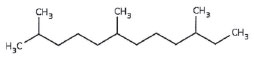 PARTE EXPERIMENTAL A Amyris Biotechnologies Inc. sediada na Califórnia, USA, com uma planta-demo no Brasil (Campinas, SP) produz o farneseno num processo de fermentaçao dos açúcares presentes no caldo da cana-de-açúcar. Esta fermentaçao envolve várias reaçoes enzimáticas e modificaçoes genéticas da levedura Saccharomyces cerevisiae. A etapa seguinte promove a hidrogenaçao do farneseno e sua transformaçao em farnesano, C15H32, um terpeno também denominado 2, 6, 10-trimetilduodecano, cuja fórmula estrutural é apresentada no Esquema 1. A etapa final é a destilaçao para a separaçao do farnesano, com a finalidade de obter um produto considerado puro, com cerca de 95% de farnesano. O produto é um líquido de cor amarelada que pode conter enxofre em teores menores que 3 mg kg-1 mas ausência de compostos aromáticos.10