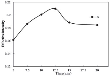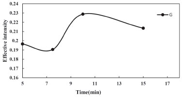 Effect of centrifuge time The centrifuge time did not have a considerable effect on the analytical features of the CPE method but accelerated phase separation. Keeping the optimized variables, the influence of centrifuge time on CPE was studied within a range of 5.0 20.0 min and the results of this study are shown in Figure 6. The results revealed that 10.0 min were enough to get a complete phase separation, and no significant enhancement was observed for longer periods of time due to cooling down of the CPE system or partial back extraction to the aqueous phase and a few decreasing in the signal. Consequently, a centrifugation time of 10.0 min was chosen as the optimal.