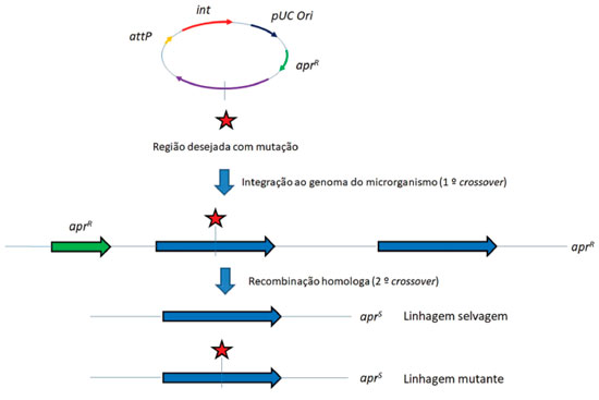 Figura 11. Visao geral sobre a manipulaçao genética de microrganismos nativos utilizando o duplo "crossover"