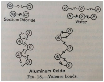 ![]() Figura 1. Representaçao das valências como ganchos, e das chamadas "ligaçoes de valência" como engates entre os ganchos (reproduzido da ref. 60, p. 89)