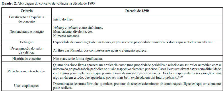 | O conceito de valência em livros didáticos de química geral entre as décadas de 1890 e 1940 The concept of valence in general chemistry textbooks from the 1890s to the 1940s |