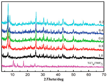![]() Figure 1. XRD spectra of Ti incorporated with NH2-UiO-66