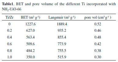 ![]() Figure 4. N2 adsorptiondesorption isotherms of Ti incorporated with NH2-UiO-66