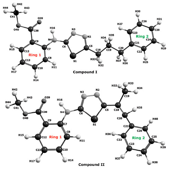 ![]() Figure 3. Numbering of the atoms in compounds I and II