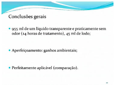 O trecho da transcriçao da fala do aluno expositor delimita a conclusao e o encerramento: Bom, no geral, entao, com esse processo nós podemos obter novecentos e cinquenta e cinco ml em um litro de líquido transparente de todos aqueles aspectos que eu falei, de pH, de matéria orgânica e quarenta e cinco ml desse lodo residual. O aperfeiçoamento dessa técnica geraria grandes ganhos ambientais inimagináveis porque geraria a economia de um grande volume de água. E ele é perfeitamente aplicável em comparaçao à eletrofloculaçao, é perfeitamente aplicável em escala industrial, em comparaçao com o uso de adsorventes. Porque, pensem vocês que o uso de adsorventes geraria maiores danos ao meio ambiente. Por quê? Porque o uso de adsorventes requer tratamento químico depois de sua utilizaçao para que eles sejam reativados e isso gera novos resíduos químicos que também deveriam, vao ser tratados. Entao, em comparaçao com a eletrofloculaçao ,,, A eletrofloculaçao é perfeitamente aplicável em comparaçao com os outros tratamentos. E é isso Observamos que o aluno expositor retoma as ideias dispostas na conclusao do AOP2, de modo que há a retomada das ideias principais. Conforme indicado por Dolz et al.,9 há a presença de uma mensagem final, que nesse caso, reafirma as potencialidades do tratamento aplicado pelos autores do AOP2, em comparaçao a outros tratamentos citados durante a EO. Por outro lado, o aluno expositor nao se refere a novos problemas, necessidades de estudos posteriores e nem indica o início de um debate (que nao ocorreu, segundo a proposta aplicada) ou o início das perguntas que poderiam ser realizadas pelos colegas. Dessa forma, o domínio do gênero elaborado se mostra parcial para a etapa de conclusao. Em relaçao aos demais grupos, ambos retomaram as conclusoes apresentadas nos AOP, assim como G2, de forma parcial. O aluno expositor de G1 apresentou, além das conclusoes em tópicos, uma imagem do AOP, que fazia parte da seçao Resultados e Discussao, para ilustrar o sucesso da técnica empregada. Já o aluno expositor de G3 destacou os bons resultados obtidos pelos autores e os pontos positivos da técnica por eles utilizada. Ambos nao comentaram, assim como G2, os tópicos descritos, como a realizaçao de estudos posteriores e nao indicaram o início da etapa de perguntas pelos colegas. No que se refere à etapa de encerramento, essa nao foi evidenciada da maneira disposta por Dolz et al.,9 de modo que nao houve o ritual de agradecimento aos espectadores e ao professor. O encerramento por parte do aluno expositor de G2 se resumiu à fala "e é isso". Desse modo, inferimos que o encerramento nao foi compreendido pelo aluno expositor, o que torna o domínio do gênero elaborado parcial. O uso da expressao para encerrar a apresentaçao pode ser tido como informal, o que implica na utilizaçao adequada ao gênero produzido, e deixa evidente as falhas na apropriaçao dos padroes para a elaboraçao da EO. Por outro lado, os grupos G1 e G3 realizaram esta etapa de forma adequada, agradecendo os espectadores pela atençao após o término das apresentaçoes. Para Silva21 as açoes envolvidas durante a EO dependem de fatores, além daqueles explicitados neste trabalho. Sendo assim, é importante destacar que é esperado que o aluno expositor também tenha conhecimento sobre o gênero que será produzido a fim de direcionar a sua apresentaçao; produza o gênero de modo claro, considerando os espectadores; seja capaz de produzir o gênero a partir do texto base, que envolve a utilizaçao correta das características cognitivas e linguístico-discursivas envolvidas, dentre outros aspectos. Assim, inferimos que os alunos expositores dos grupos G1, G2 e G3 foram capazes de produzir o gênero em questao, ainda que nao tenham se apropriado de sua elaboraçao em todos os momentos. Diante da proposta realizada, tal elaboraçao do gênero se mostra como importante para cumprir os aspectos citados por Silva21 e tomar conhecimento de como se dá uma EO em âmbito acadêmico.