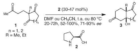 ![]() Esquema 1. Síntese de cetonas bicíclicas organocatalisadas por prolina