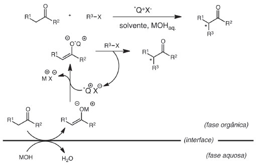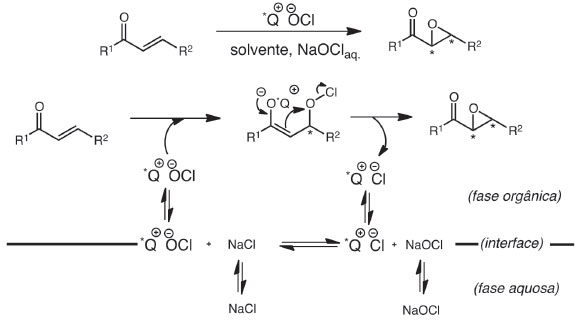 ![]() Figura 8. Mecanismo geral interfacial de Makosza (*Q+ = catalisador quiral)