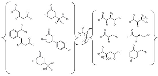 Pode-se perceber, através deste exemplo, como as cascatas permitem, em uma única reaçao de várias etapas, elevar o nível de complexidade estrutural de forma surpreendente. O rendimento global elevado também seria difícil de ser obtido através de etapas isoladas na síntese tradicional. Destacamos a versatilidade dos organocatalisadores e seus modos genéricos de ativaçao como instrumentos poderosos neste tipo de reatividade, essencial para os químicos que pensam em sínteses totais de produtos naturais e/ou de interesse farmacêutico.