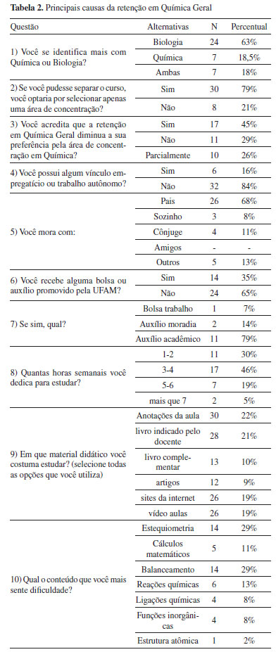 | Avaliação das causas de retenção em química geral na Universidade Federal do Amazonas Evaluating of low pass rates in general chemistry at the Federal University of Amazon |