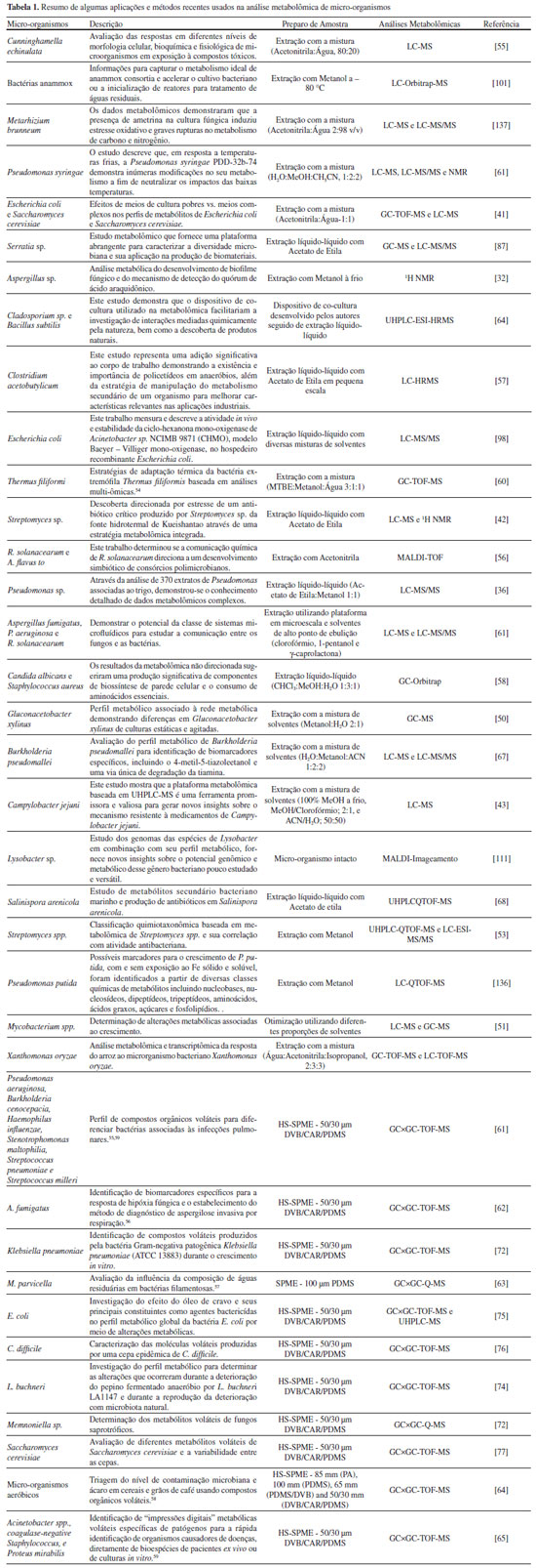 | Metabolômica microbiana: inovações e aplicações Microbial metabolomics: innovations and applications |