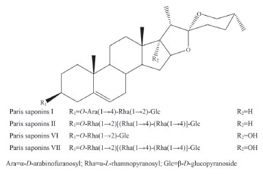 ![]() Figure 2. Chemical structures of Paris saponins I, Paris saponins II, Paris saponins VI and Paris saponins VII