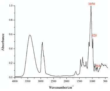 Discrimination and evaluation of PPY in different geographical origins Two-dimension score plots were generated for PPY of different geographical origins. As seen in Figure 7(C), PPY collected from eastern, western and southern regions of the Yunnan Province were divided into three parts. PPY in the eastern regions were located in the positive principal component one, except for PPY-YX1 (8), which was an outlier. The majority of PPY collected in the Baoshan and Nujiang western region were listed in the positive and negative principal component. The dispersive spots had various geographical conditions such as the soil, climate and altitude in the western region of the Yunnan Province. In addition, most of the samples in the southern region were loaded in the positive principal component one. As it can be seen, some samples overlapped all three regions. These data implied that chemical profile with PPY of different regions might be affected by other factors. VIP based on PPY of different regions is shown in Figure 7(D). VIP of three wavebands including 3610-3309 cm-1, 1700-1531 cm-1 and 1168-910 cm-1 were above 1, which were selected as important variables for discrimination of PPY of different geographical origins. Those absorption bands were due to steroidal saponins skeletal vibration according to the previous VIP analysis of Paris with different species.