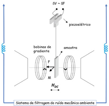 ![]() Figura 1. Diagrama do Magnetômetro de Força Magnética por Gradiente Alternado (AGFM). Adaptado de André Gündel11