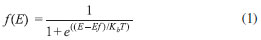 A Figura 2 mostra a formaçao de uma "banda s", constituída pela sobreposiçao de orbitais do tipo s, sendo possível também a formaçao de bandas "p" e "d". Devido à diferença energética entre os orbitais ligantes e antiligantes, pode ocorrer a formaçao de uma falha entre as bandas, conhecida como banda proibida ou band gap (Eg). Assim, a existência da banda proibida está relacionada com a extensao das bandas consecutivas e a diferença energética dos tipos de orbitais que as constituem.12 A ocupaçao das bandas pode ser descrita pela funçao Fermi, que nos fornece a probabilidade de um estado de energia E estar ocupado por um e- livre.13 ![]() Na equaçao (1), T é a temperatura absoluta do sistema em Kelvin, kB é a constante de Boltzmann (aproximadamente 1,38065.10-23 J/K) e Ef é o nível de Fermi. O Ef é um nível energético de referência do material, sendo um parâmetro importante na prediçao de seu comportamento elétrico.14 De acordo com essa funçao, à temperatura de 0 K, a probabilidade de ocupaçao de um estado com energia inferior ao Ef é de 100% (f = 1). Por outro lado, para níveis com energia superior ao Ef, a possibilidade de ocupaçao é nula. A medida que a temperatura aumenta, os e- podem adquirir energia suficiente para ocupar estados energéticos acima do nível de Fermi.13 A condutividade em sólidos resulta da mobilidade de portadores de carga, em resposta a um campo elétrico aplicado.9 A Figura 3 traz uma representaçao esquemática da estrutura de metais, isolantes e semicondutores a 0 K. Em metais, geralmente há uma sobreposiçao de bandas (Figura 3a). Assim, os e-da BV podem transitar com facilidade para a BC com a adiçao de pouca energia ou aplicaçao de um campo elétrico. As estruturas de semicondutores e isolantes sao semelhantes por apresentarem a BV totalmente preenchida e a BC totalmente vazia (Figuras 3b e 3c). A diferença está na largura da Eg, que é mais estreita nos semicondutores. Desse modo, nos semicondutores alguns estados inferiores na BC sao mais acessíveis para e-do topo da BV à temperaturas superiores a 0 K.15