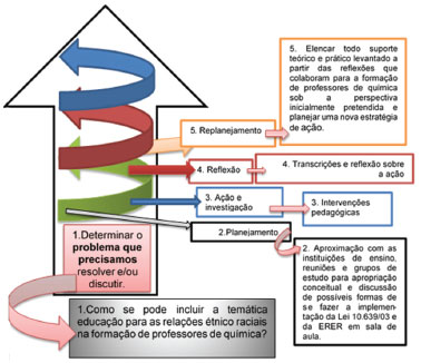 METODOLOGIA Esta investigaçao foi desenvolvida segundo a técnica de pesquisa-açao, isso é, uma pesquisa focada na melhoria da atuaçao profissional dos que nela se envolvem. Importa ressaltar que, na pesquisa-açao, os sujeitos da pesquisa sao vistos como profissionais que podem resolver problemas a partir da açao refletida. Na Figura 1 resumimos o caminho metodológico dessa pesquisa que se desenvolveu em ciclos espirais caracterizados por cinco etapas. Neste excerto discutimos dados obtidos em um dos ciclos de pesquisa-açao.