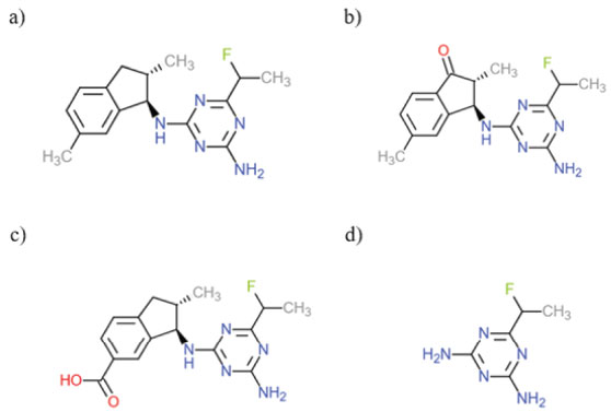 ![]() Figure 1. Chemical structures of indaziflam and its three metabolites a) IND, b) ITI, c) ICA and d) FDAT