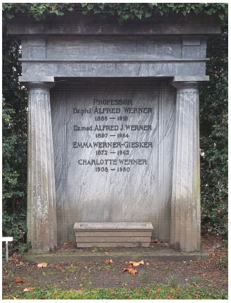Penso que, neste ano de 2019, por ocasiao de centésimo aniversário de falecimento do pai da moderna Química de Coordenaçao, a comunidade inorgânica brasileira possa (talvez mais apropriado seria dizer "deva"?) programar homenagens, mesmo que singelas (na forma de palestras, workshops, exposiçoes, etc.), com o intuito de divulgar a vida e obra deste ator fundamental para o progresso da nossa ciência, assim como refletir igualmente sobre a importância da audácia e da intuiçao no processo da descoberta científica. Sei que se fala de Werner nos cursos introdutórios, mas considero necessário falar ainda mais! Alfred Werner, falecido um 15 de novembro de 1919 à idade de 52 anos, encontra-se sepultado no túmulo no. 85067 do Friedhof Rehalp, junto à sua esposa Emma Werner-Giesker e seus filhos Alfred e Charlotte. A confusao com o ano de falecimento se deu por conta de seu filho (1897-1954), médico e homônimo do pai. Pelo seu significado, o local certamente vale a visita. Descanse em paz, mestre. Eterno exemplo para todos nós...
