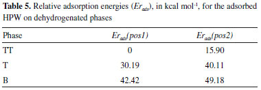 The HPW geometries in contact with the crystalline phases of the niobia were optimized and the final electronic energy of the system was obtained. Table 5 shows the relative energies of the adsorbed systems.
