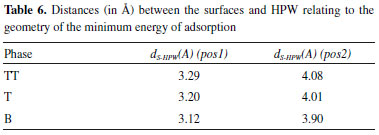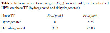 In order to evaluate the influence of a hydrogenated phase on the HPW adsorption, the hydrogen atoms were added to the face (001) of TT-Nb2O5, which presented the best result in our theoretical calculations. The results are described in Table 7.