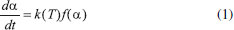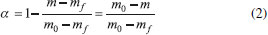 ![]() Figura 3. Curvas TG da amostra do GFN 2A em função da porcentagem de perda em massa “α” utilizada para o estudo cinético do material