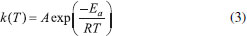 ![]() Figura 8. Plot de Arrhenius de PFPE para cinco temperaturas na simulação de decomposição do LAMMPS