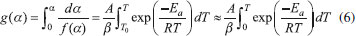 PARTE EXPERIMENTAL Técnica utilizada na caracterização térmica do material Para a caracterização térmica da graxa à base de Perfluoropoliéter (PFPE), foi utilizada a termogravimetria (TG), com o intuito de determinar os parâmetros cinéticos da decomposição térmica lubrificante. Esse teste foi orientado pela norma ASTM E 1131-08 e foram usadas as diretrizes definidas pela ICTAC Kinetics Committee,27 que definem que o teste empregue três razões de aquecimento (1 a 20 ºC min-1), massa de amostra entre 1 a 20 mg, atmosfera de ar sintético e razão de aquecimento em 100 mL min-1. Desse modo, as curvas TG foram obtidas a partir de uma massa inicial de amostra de 10 mg, no intervalo de temperaturas de 25 à 1000 ºC, nas razões de aquecimento (β) de 10, 15 e 20 °C min-1, respectivamente, e em atmosfera de ar sintético com vazão de 100 mL min-1, com o emprego do equipamento Shimadzu DTG 60. Métodos de determinação dos parâmetros cinéticos Método Isoconversional A cinética não isotérmica pode ser classificada como modelo livre, também chamado de método isoconversional e é mais comumente usada para realizar a análise cinética de reações no estado sólido. Muitos métodos cinéticos foram propostos para ajustar os dados obtidos com a finalidade de obter os parâmetros que caracterizam o processo de degradação térmica de amostras de espécies químicas. Considera-se a taxa de reação constante na faixa de conversão (α) e dependente somente da temperatura (T).28 A cinética das reações químicas em sólidos, mais especificamente a degradação térmica, tal como para a reação genérica, s1S1 (s) → s2S2 (s) + gG (g), pode ser descrita pela taxa de conversão do reagente S1 nos outros, geralmente determinado como uma derivação da lei de ação de massas, originalmente proposto por Guldberg e Waage:29 ![]() Em que α é o grau de conversão, t é o tempo, dα/dt é a taxa de reação, k(T) é o coeficiente de taxa a uma temperatura absoluta T e f(α) é uma função de α, com sua forma exata dependendo da ordem do modelo cinético. A conversão α da amostra pode ser calculada a partir da perda de massa da amostra durante a reação química (degradação térmica):29 ![]() Em que m representa a massa da amostra restante no tempo t, mf a massa final da amostra quando a reação está completa, e m0 a massa inicial da amostra. A constante de velocidade da reação k(T) pode ser expressa em função da temperatura absoluta T empregando várias equações, no entanto a expressão mais usada para k(T) foi descrita:29 ![]() Na qual A, Ea e R representa o fator pré-exponencial, a energia de ativação, e a constante universal dos gases, respectivamente. Considerando a relação de Arrhenius para o coeficiente de taxa e temperatura absoluta, a constante de velocidade, Eq. (1) pode ser escrita de forma diferencial como: ![]() Para condições não isotérmicas, quando a temperatura absoluta aumenta com o tempo a uma razão de aquecimento constante, β = dT /dt, Eq. (4) pode ser representada como: ![]() Assumindo que o fator pré-exponencial seja independente da temperatura, pode-se obter a forma integral da equação de grau de conversão: ![]() Em que o limite inferior de integração da última integral pode ser aproximado para zero, desde que o grau de conversão seja desprezível para temperaturas abaixo da temperatura ambiente T0. Goldfarb et al. e Duvvuri et al. Segundo o método de Goldfarb et al. e Duvvuri et al., os parâmetros cinéticos são determinados a partir de curvas típicas de dados TG ao longo de toda a faixa de temperatura de forma contínua. O valor de A, Ea e n foram calculados usando uma regressão linear múltipla. Como proposto por Goldfarb et al. e Duvvuri et al.,30 a forma linearizada da equação de Arrhenius para este método é descrito na equação (7): ![]() Os parâmetros y, x, z, B, C e D da Eq. (7) são definidos como: y = ln {[-1 / (m0 - mf)] X [dm/dt]}, x =1/RT, z = ln [(m - mf)] / (m0 - mf)], B = ln A, C = −Ea, D = n, m = massa da amostra no tempo t, m0 = massa inicial da amostra e mf = massa final da amostra que restou da reação.30 Método de Flynn-Wall-Ozawa A energia de ativação pode ser calculada pelo método isoconversional de Flynn-Wall-Ozawa (FWO) para o estudo da cinética de degradação com o uso de dados de curvas TG. A vantagem desse método é a determinação da energia de ativação sem que seja necessário conhecer a ordem da reação. Ele assume que a função de grau de conversão f(α) permanece constante para todos os valores de conversão α em diferentes razões de aquecimento β. A partir do gráfico de ln(β) versus 1000/T obtém-se a energia de ativação Ea.31,32 Para FWO, emprega-se a Eq. (6) e a aproximação de Doyle32, e o resultado da integração depois de aplicar logaritmos é: ![]() Método de Kissinger O método de Kissinger assume que o grau de conversão tem valor máximo na temperatura de pico (Tp). Esta hipótese também sugere um ponto constante de conversão (α) em Tp. A equação de Kissinger pode ser escrita matematicamente da seguinte forma28 ![]() na qual β e R equivale a razão de aquecimento (K min-1) e constante universal dos gases (0.008314 kJ mol-1 K-1), respectivamente. Considerando a reação de primeira ordem, f(α) = (1− α) e f ‘(α) = 1. Após reorganizar e aplicar logaritmos a ambos os membros da Eq. (9) obtém-se: ![]() Esse método pode ser usado independente do grau de conversão, portanto é necessário conhecer o mecanismo de reação. Um gráfico de ln (β/Tp2) versus 1/T fornece Ea e A, a partir da inclinação e ponto de interseção, respectivamente.28 Simulação computacional Dinâmica Molecular A dinâmica molecular (MD) estuda o movimento de átomos ou moléculas em função do tempo, ou seja, é uma simulação computacional que obedece às equações de movimento de Newton ao longo do tempo. Pode ser representado matematicamente pela eq