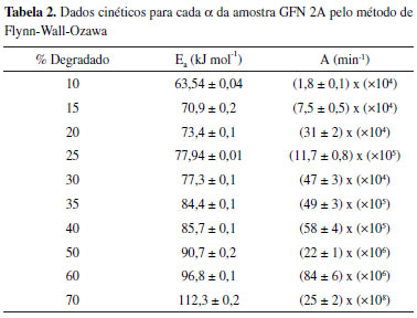 ![]() Figura 5. Curva da Ea em função de α da amostra GFN 2A