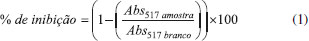 PARTE EXPERIMENTAL Reagentes e soluções Todos os reagentes utilizados foram de grau analítico. Os padrões catequina, ácidos gálico, cafeico, p-cumárico, ferúlico, salicílico, vanílico, siríngico, protocatecuico, quercetina e umbeliferona e demais compostos fenólicos foram obtidos na Sigma-Aldrich (St. Louis, Missouri, USA). Todos os reagentes apresentaram pureza maior do que 95%. Reagentes de Folin-Ciocalteu, 2,2-difenil-1-picrilhidrazila (DPPH•), metanol, éter etílico e ácido fórmico foram obtidos na Sigma-Aldrich (São Paulo, Brasil). Cloreto de férrico hexahidratado (FeCl3.6H2O), ferricianeto de potássio (K3[Fe (CN)6]), sulfato de cobre pentahidratado (CuSO4.5H2O), tartarato duplo de sódio e potássio (KNaC4H4O6·4H2O) e glicose anidra foram adquiridos da Alfhatec (Rio de Janeiro, Brasil). Carbonato de sódio, Cloreto de alumínio hexahidratado (AlCl3.6H2O), nitrito de sódio (NaNO2), álcool etílico, 2,3,5-trifenil cloreto de tetrazólio e isobutanol (C4H10O) foram adquiridos da Vetec (Rio de Janeiro, Brasil). Hidróxido de sódio (NaOH) foi adquirido da Dinâmica (São Paulo, Brasil). Ácido clorídrico foi adquirido da Biotec (São Paulo, Brasil). Acetato de sódio anidro (C2H3NaO2) foi adquirido da Proquimios (Rio de Janeiro, Brasil). A água ultrapura com resistividade 18,2 MΩ cm a 25 ºC (GEHAKA Master All 2000 system, Brasil) foi utilizada no preparo das amostras e soluções. Soluções estoque 1000 mg L-1 em metanol de cada composto fenólico foram usadas para preparação das curvas analíticas para as determinações por LC-ESI-MS/MS. Uma solução estoque multielementar ICP-3 (Perkin-Elmer) contendo 1000 mg L-1 dos analitos Si, Cu, Zn, V, Ni, Al, K, Mg e Mn, foi utilizada para o preparo das soluções de calibrações. Peróxido de hidrogênio e o ácido nítrico foram adquiridos da Merck (São Paulo, Brasil) usados para a digestão das amostras de folhas para posterior determinação da concentração dos minerais por ICP-MS. Material vegetal Folhas da amoreira preta (Morus nigra L) jovens, totalmente expandidas, com pecíolo, livres de pragas e doenças e de uma mesma árvore, foram coletadas no período da manhã a uma temperatura de 18 ± 3 °C na região de Ponta Grossa no mês de setembro, coordenadas 25°03’15.7”S 50°08’02.9”W. O material coletado foi imediatamente transportado até o Laboratório de Métodos Instrumentais da Universidade Tecnológica Federal do Paraná, Campus Ponta Grossa e imediatamente higienizado. As amostras foram desidratadas em estufa de circulação de ar forçado (Fanem, 320-SE) com temperatura regulada para 50 ± 2, 75 ± 2 e 100 ± 2 °C (temperaturas correspondentes, respectivamente, aos limites inferiores, ponto central e limites superiores do planejamento experimental). Em seguida, as folhas foram moídas em moinho analítico (Quimis®, São Paulo, Brasil) e peneiradas, de modo a obter uma amostra com granulometria de diâmetro inferior a 0,71 mm. Posteriormente, estas foram armazenadas protegidas da luz, em tubos do tipo falcon escuros, e mantidas em temperatura de - 6 ± 1 °C até o momento das análises. Planejamento experimental e preparo do extrato Visando simular a preparação natural de infusão de folhas de amoreira preta, a água foi selecionada como solvente extrator. Outro motivo dessa escolha é que um dos maiores desafios na extração de compostos bioativos naturais é a toxicidade alta dos solventes orgânicos e a quantidade de resíduos gerados.10 A extração dos compostos bioativos foi otimizada por meio de um planejamento experimental fatorial 23 totalizando-se 8 experimentos com ponto central em triplicata, para investigação dos efeitos das variáveis independentes: temperatura de secagem (50, 75 e 100 ± 1 °C) temperatura de infusão (70, 83 e 96 ± 0,1 °C) e tempo de extração (10, 20 e 30 min) sobre a variável dependente: conteúdo fenólico total. Os extratos foram preparados utilizando-se 0,5 g de matéria seca, as folhas de amoreira preta em pó, para 25 mL de água ultrapura. As extrações foram realizadas em banho ultratermostático (Solab SL 152) com tempo e temperatura ajustados conforme o planejamento experimental. Os extratos obtidos centrifugados por 3 min a 4000 rpm (Lab 1000, Modelo DMO4125) e, em seguida, o sobrenadante foi armazenado protegido da luz, em tubos do tipo falcon escuros para posterior análise. A determinação da concentração do conteúdo fenólico total foi realizada imediatamente após a extração. Conteúdo fenólico total (CFT) O CFT de extratos das folhas da amoreira preta foi determinado seguindo o procedimento de Folin-Ciocalteu com algumas modificações.11 Uma alíquota de 100 μL do extrato, 500 μL de água e 500 μL de uma solução aquosa do reagente Folin-Ciocalteau (1:3 v/v) foram adicionadas em tubo de ensaio. As amostras foram agitadas e após 5 min foram adicionados 500 μL de Na2CO3 (10% m/v), mantendo-se em repouso por 1 h. A absorvância da amostra foi monitorada em 720 nm utilizando espectrofotômetro UV-Vis (FEMTO 800 XI, Brasil) e cubeta de vidro com caminho óptico de 1 cm. Uma curva de analítica foi preparada com ácido gálico (R 2 = 0,9974) na faixa de concentração de 25 a 600 mg L-1. O experimento foi realizado em triplicata e os resultados expressos como média ± desvio padrão em mg de ácido gálico equivalente por g de amostra seca (mg GAE g-1). Determinação de flavonoides totais Em uma alíquota de 250 μL da amostra de extrato foram adicionados 2720 μL de etanol (30% v/v) e 120 μL de uma solução de nitrito de sódio (0,5 mol L -1). Essas foram homogeneizadas e mantidas em repouso por 5 min. Em seguida, adicionou-se 120 μL de uma solução de cloreto de alumínio hexaidratado (0,3 mol L-1). Decorridos mais 5 min adicionou-se 800 μL de uma solução de hidróxido de sódio (1,0 mol L-1) e homogeneizadas manualmente. A absorvância foi medida em 510 nm, e a curva analítica (R2 = 0,9966) foi obtida