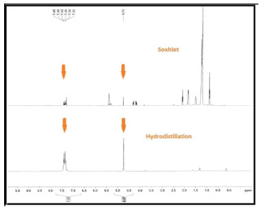 ![]() Figure 1. 1H NMR spectra comparing the extraction methods after 3 hours. The highlighted signals are related to the BITC chemical shifts
