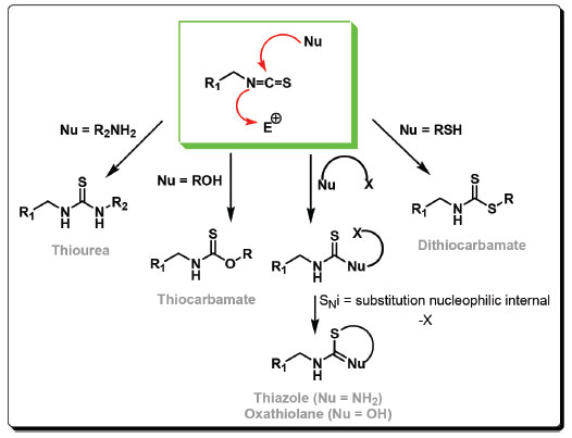 In case of papaya, the benzyl isothiocyanate (BITC) formed from this enzymatic mechanism, can be precursor of important organic functional groups by direct nucleophilic addition (Scheme 2).