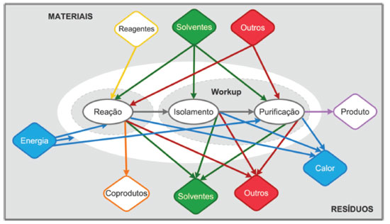 A descrição completa dos fluxos de materiais e de energia permite conhecer a utilização da matéria e da energia ao longo do processo de síntese, suportando o cálculo das métricas. Para esse fim, é requerido o registo detalhado, ao longo da execução da síntese, das quantidades de substâncias usadas, não só dos reagentes estequiométricos, mas também dos solventes e de outros materiais auxiliares.