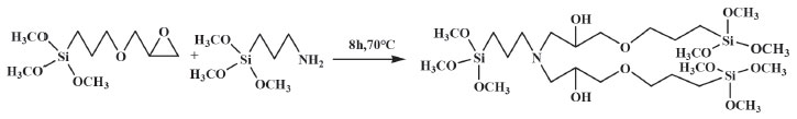EXPERIMENTAL Preparation of template agent The templating agent, KH560-540 was synthesized using the procedure reported by Li et al.32 Alkyl coupling agents, KH-560 and KH-540 were added to a three-necked flask at a molar ratio of 2:1 respectively. The reaction was carried out at 70 °C for 8 hours under microwave conditions under a nitrogen atmosphere in order to obtain the KH560-540 monomer, which was then dissolved in methanol to form a solution with a 50% mass concentration. Figure 1 shows the equation of the reaction.