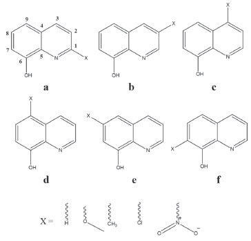 A 8-HQ e seus derivados são uma subclasse das quinolinas que atuam como ligantes bidentados com boa afinidade para íons divalentes de metais de transição, o que justifica seu uso como base para o desenvolvimento de novos quelantes para Cu2+ e Zn2+, além de possuírem diversas funções biológicas conhecidas, como fungicida, bactericida e antibacteriana.15