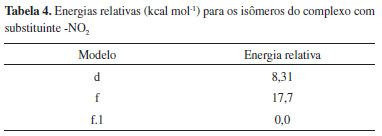 Foram obtidas as estruturas otimizadas dos complexos de Zn2+ com cada um dos ligantes estudados, e todos apresentaram geometria tetrédrica em torno do centro de coordenação. Suas energias relativas são apresentadas na Tabela 3. Já a Figura 6, apresenta os estruturas otimizadas para os complexos mais estáveis obtidos com cada substituinte.
