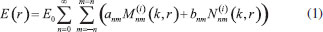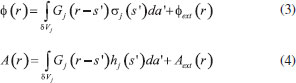 COMPUTATIONAL There are multiple numerical methods to describe the interaction between the electromagnetic radiation and matter. In this manuscript, we used an approach based in classical electrodynamics, specifically, two methods were used: Generalized Mie theory (GMT)49,50 and Boundary Element Method (BEM).51,52 In the following, a brief description of the two methodologies is presented. Both methods seek for a solution of the behavior of the electric field in all space that comprises the nanoparticle and the embedding dielectric medium. With this solution, properties such as efficiency of light scattering as function of incident wavelength (scattering spectrum) and the local field amplifications (related to SERS enhancements) can be computed. In these methods the material response in respect to the light electric field perturbation is described by the material dielectric function. In all simulations it was used the tabulated data for the gold dielectric function from Johnson and Christy compilation.53 To describe the water environment surrounding the nanoparticles it was considered a wavelength-independent dielectric constant of 1.777. Generalized Mie Theory (GMT) Mie theory corresponds to the exact solution of Maxwell equations for a spherical object.4,54 The method describes the complicated result of the interaction of light with an object as an infinite series in terms of vector spherical harmonics (N, M), as presented in Eq. 1: ![]() The vectors and are interpreted as the electric and magnetic fields, respectively, generated by charge density distributions located at the orgin. The label n indicates the shape of the distribution, n=1 for a dipole charge distribution, n=2 for a quadrupole, etc. The index m describes the z-axis projection of the total angular momentum, in the same sense as in the hydrogen atom quantum mechanical wavefunction solutions. Therefore, the nanosphere response to the incoming field of magnitude E0 can be decomposed as a linear combination of multipolar charge distributions inside the metal with combination coefficients anm e bnm. The index (i) controls the behavior of the radial distribution of the fields inside and outside of the nanosphere. The GMT method is a generalization of Mie theory to account for the scattered fields of multiple particles that must be accounted for in the description of the field reaching a given particle.49,50 All the simulations in this work were performed with the GMMFIELD program.55 Boundary Element Method (BEM) In the case of geometries other than the spherical shape, numerical solutions must be obtained. In this manuscript we used the BEM, in which the electric field in a given position r is calculated taking into account the fact that it can be described in terms of vector (A) and scalar (φ) potentials. In this description the magnetic field is described by the curl of A in a similar fashion as the electric field can be calculated by the gradient of φ. ![]() In BEM the solution for the scalar and vector potentials can be obtained by a surface integration of the product of the Green's function (G) and the surface charge (σ) and current (h) densities, subjected to electromagnetic surface boundary conditions.48 ![]() The advantage of BEM over other methodogies, such as the discrete dipole approximation (DDA) or the finite-difference time domain (FDTD) methods, is that only the surfaces of the structures must be simulated, whereas all the nanoparticle (DDA) and environment (FDTD) must be taken into account in the other methods. The BEM simulations were performed with the MNPBEM17 program.56 Statistical analysis All statistical analysis and data treatment were performed with the R program and its packages.57,58 In particular probability densities functions for the SERS enhancement factors were obtained by the kernel density estimation approach. In such method, the probability densities were computed as sums of gaussian distributions (kernels) with a given bandwidth.