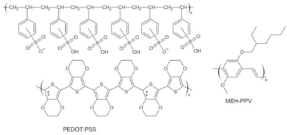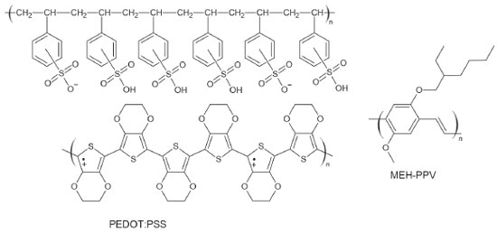 EXPERIMENTAL A dispersão aquosa de PEDOT:PSS (1,3 m/m %) (Aldrich) e o MEH-PPV (Mn = 40 – 70 kDa) (Aldrich) foram utilizados sem purificação prévia. A dispersão de PEDOT:PSS foi gotejada sobre slide de vidro e seco sob vácuo em dessecador contendo sílica-gel à temperatura ambiente. O sólido obtido foi armazenado em dessecador e caracterizado através de análise termogravimétrica e espectroscopia Raman. Os espectros Raman foram registrados em um espectrômetro Raman dispersivo Senterra (Bruker) acoplado a um microscópio óptico Olympus BX-51, Utilizando as linhas laser em 785 e 633 nm. O feixe do laser foi focalizado na amostra utilizando uma lente objetiva de magnificação de 50× (NA = 0,51). Os espectros em diferentes temperaturas foram obtidos utilizando-se o estágio de temperatura controlada Linkam modelo FTIR600. Os ajustes de curva para os espectros Raman foram realizados utilizando o programa GRAMS/AI empregando combinações de funções Gaussianas e Lorentzianas, e os valores para a área, largura e posição das bandas não foram fixados. O número de bandas foi determinado com base nos estudos Raman reportados previamente na literatura para os respectivos polímeros. Foram realizados três espectros em diferentes pontos da amostra para cada temperatura e o ajuste de curva foi realizado para cada um deles. Os espectros FT-IR foram registrados utilizando o espectrômetro Alpha (Bruker) a partir de dispersões em pastilhas de KBr. As análises térmicas foram realizadas utilizando o analisador térmico Shimadzu DTG-60 com atmosfera de ar sintético com vazão de 50 mL min-1 e taxa de aquecimento de 10 ºC min-1. Os espectros de absorção no UV-VIS foram registrados em um espectrômetro Shimadzu UV-1800.