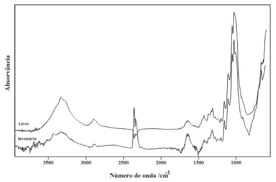 ![]() Figura 6. Espectros µ- FTIR do Inventário e do Livro
