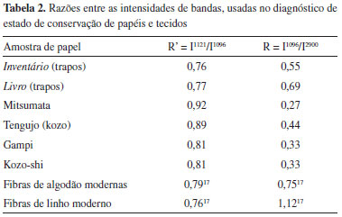 AGRADECIMENTOS Os autores são gratos à Fundação de Amparo à Pesquisa do Estado de São Paulo (Fapesp) pelo apoio financeiro (processos no. 12/1311-3 e 16/21070-5). Agradecem também ao Prof. Dr. Yoshio Kawano pelas valiosas discussões sobre uso dos polímeros no processo de laminação do manuscrito e revisão cuidadosa do texto, Nathália D'Elboux Bernardino pela obtenção de espectros ATR-FTIR, Rodrigo Moreira pelo auxílio no uso do microscópio FTIR e no tingimento das fibras, Helen Ikeda pela doação do livro de 1777, Sr. Hiroyoshi Chinzei pela doação das amostras de papel japonês e à Bruker por disponibilizar o microscópio FTIR Lumos.