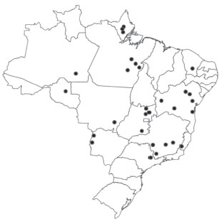 ![]() Figura 1. Localização das principais reservas de manganês em território nacional. Adaptado a partir das informações das referências 10, 11, 12 e 16