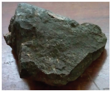 ![]() Figura 3. Amostra de pirolusita (β-MnO2) proveniente de Urucum (MS). Imagem do autor