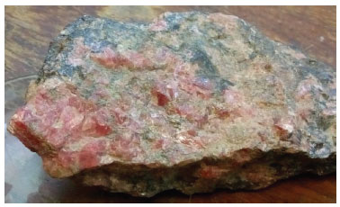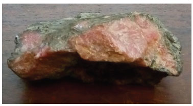 ![]() Figura 5. Amostra de rodonita (MnSiO3) de Conselheiro Lafaiete (MG). Imagem do autor