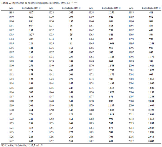 | Manganês no Brasil: descoberta, extração, consumo e comercialização numa perspectiva histórica Manganese in Brazil: discovery, extraction, consumption and marketing from a historical perspective |