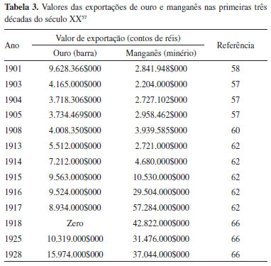 A Usina Wigg, implantada por Carlos Galignaino da Costa Wigg (1855-1931), significou "um grande passo alcançado pela indústria metalúrgica no país, tendo a primazia de ser o único e o primeiro montado em Minas Gerais".53 Tal fato coincidia com o grande impulso que a siderurgia tomava no mundo.54 A produção mundial de aço atingiu 28,3 milhões de t em 1900 e 60,3 milhões de t em 1910, o que exigia cada vez mais minério de manganês a fim de atender à demanda. Isso fez com que esse elemento fosse reconhecido como estratégico, insumo indispensável para a produção de aço.8,13 Nos primeiros cinco anos, a Usina exportou as seguintes quantidades de minério de manganês:54 1894, 1.902 t; 1895, 7.593 t; 1896, 12.454 t; 1897, 10.518 t; 1898, 7.894 t. Ela se situava ao lado de jazidas de ferro, manganês e calcário, no entroncamento de importante vias férreas, e contava com abundantes recursos naturais como água e lenha.55 Uma parceria com a Escola de Minas de Ouro Preto, previa supervisão técnica à produção de minério de manganês.56 Depois do auge da mineração de ouro no século XVIII, o manganês começou a disputar com ele a posição de principal commodity mineral em valor de exportação a partir do início do século XX, sendo a pauta de exportações desse segmento complementada por areias monazíticas, pedras preciosas, cobre, platina, dentre outros (Tabela 3).57 A principal receita de exportação era devida ao café, quase duzentas vezes a do manganês (10º colocado), seguido da borracha (sessenta vezes).58 Em 1905, a guerra russo-japonesa e a greve nas minas de manganês no Cáucaso elevaram as cotações do manganês no mercado mundial, o que estimulou a lavra e a exportação do minério brasileiro.8,13 O principal mercado importador nessa época era a Inglaterra.59