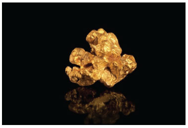 ![]() Figura 1. Pepita de ouro nativo, Museu das Minas e do Metal, Belo Horizonte