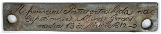 ![]() Figura 2. "A primeira Prata extrahida na Capitania de Minas Geraes no dia 18 de Maio de 1812", pelo metalurgista alemão Barão Wilhelm von Eschwege. Museu Histórico Nacional, Rio de Janeiro