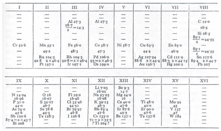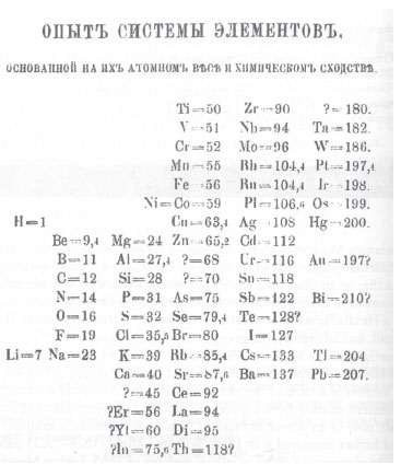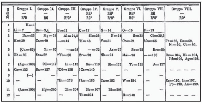 ![]() Figura 11. A Tabela original de Mendeleev, de 1869, publicada na Rússia26